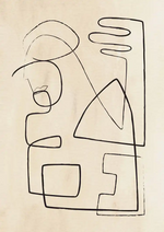 Een schilderij waarbij je een eigen verbeelding nodig hebt. De Zwarte lijnen vormen een figuur.