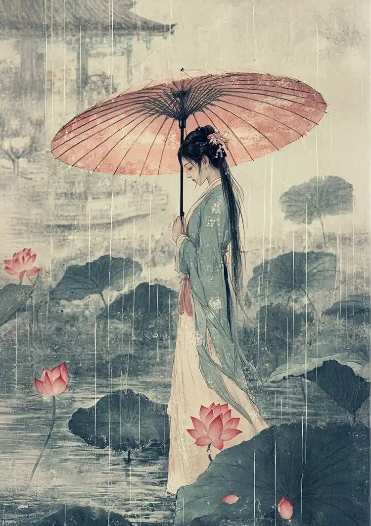 Waarom je kiest voor Japanse dame in de regen schilderij op canvas