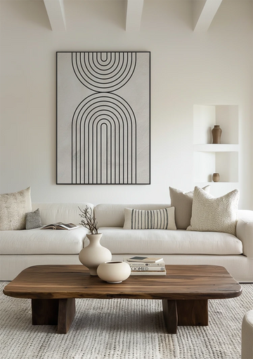 Zwart-wit kunst werkt geweldig in minimalistische ruimtes als een sterk visueel middelpunt. Het creëert een schone en strakke look die rust en eenvoud uitstraalt. De monochrome kleuren passen perfect bij een minimalistische esthetiek en voegen een element van verfijning toe zonder de ruimte te overweldigen.