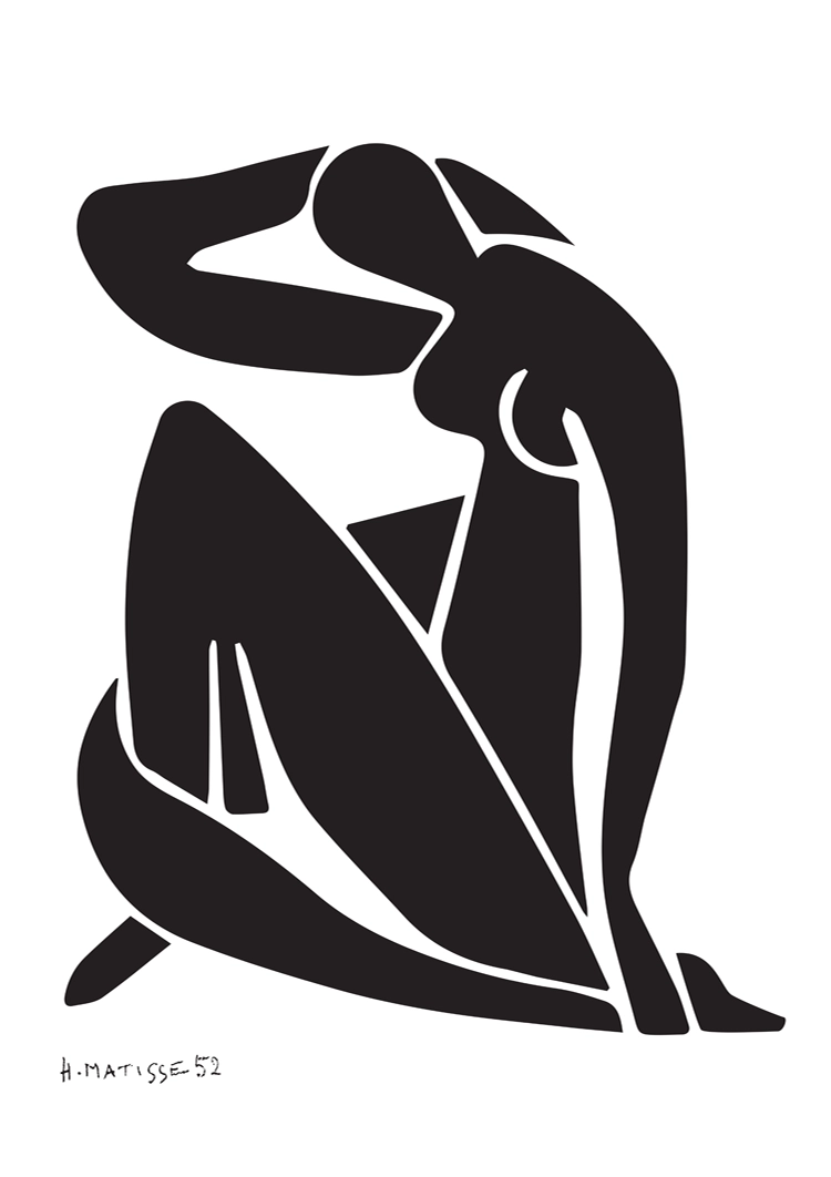 Een schilderij met het silhouet van een zwart vrouwenlichaam.