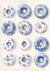 Schilderij van twaalf donuts met prachtige Delfts Blauwe motieven. Deze gedetailleerde patronen maken van elke donut een kunstwerk.