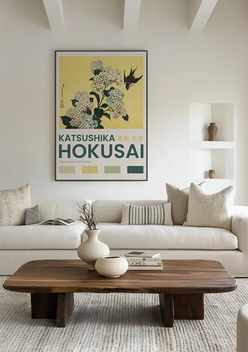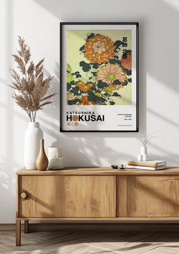 K. Hokusai Chrysanthenum And Bee Schilderij