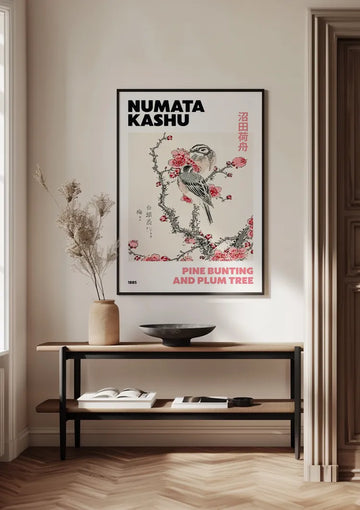 N. Kashu Pine Bunting And Plum Tree Schilderij