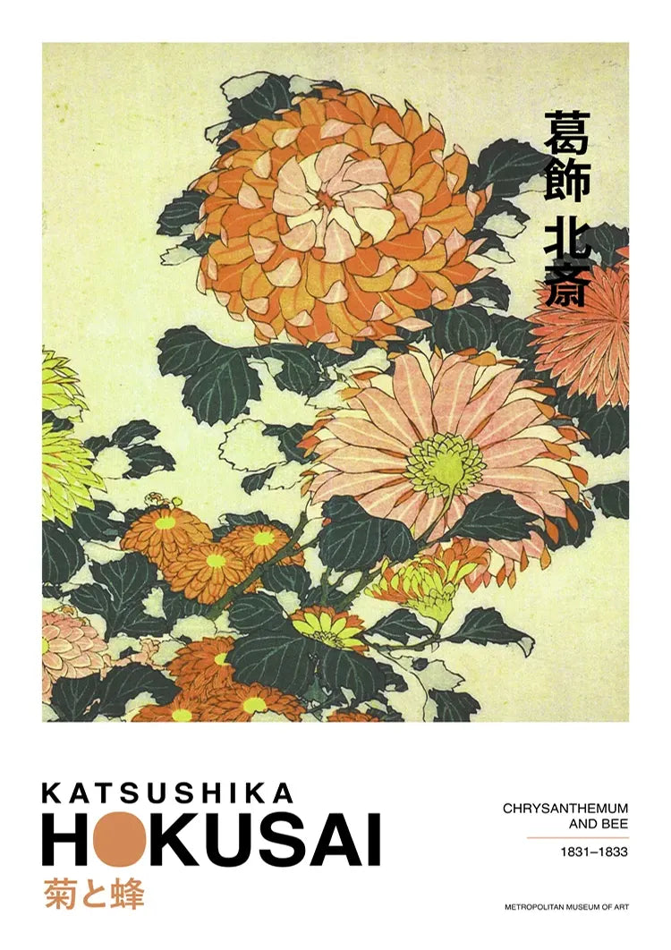 K. Hokusai Chrysanthenum And Bee Schilderij