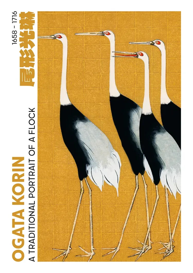 O. Kōrin A Traditional Portrait Of A Flock Schilderij