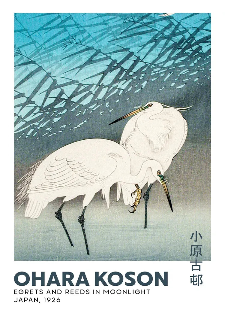 Waarom je kiest voor O. Koson Egrets And Reeds In Moonlight Schilderij op canvas