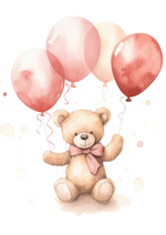 Dit schattige schilderij vangt een lief teddybeertje, die een aantal roze ballonnentjes vasthoudt. Een lieflijke toevoeging aan elke kamer!