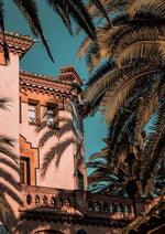 Op dit schilderij is een gebouw in mediterrane stijl te zien met sierlijke ramen.