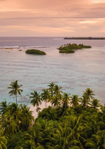Een schilderij met een afbeelding genomen uit de hoogte, met zicht op het strand.
