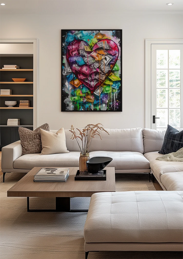 Kleurrijk Hart Vol Met Geld Biljetten Schilderij