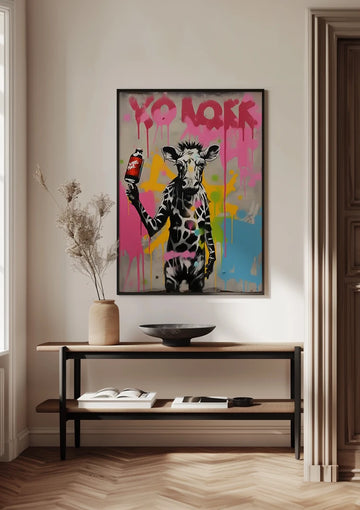 Giraffe Met Spuitbus Schilderij