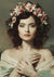 Een prachtig vintage schilderij van een vrouw met een bloemenkrans op haar hoofd.
