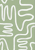 Een abstracte schilderij met witte kronkelige lijnen gerangschikt in lusvormige, doolhofachtige patronen op een zachtgroene achtergrond.