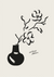 Dit minimalistische schwarz-weiß Gemälde fängt die schlichte Eleganz einer runden Vase mit drei wunderschönen blühenden Blumen ein. Ein zeitloses Stück, das Ruhe und natürliche Schönheit ausstrahlt.