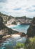 Auf diesem Gemälde sieht man mehrere Stellen mit Wasser und große bergartige Felsen.