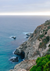 Ein Gemälde eines felsigen Berges mit einem klaren Meer davor.