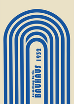 WeiterlesenSchwarzweißes Gemälde mit auffälligen, blauen Bögen, die kleiner werden, um Tiefe zu erzeugen. Ein Vintage-Grafikdesignstil, der Einfachheit und Symmetrie betont.