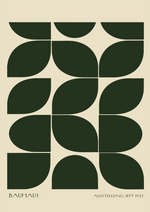 WeiterlesenEin grafisches Gemälde mit einem Raster aus dunkelgrünen Formen, die jeweils eine stilisierte Blattform enthalten und so ein nahtloses Muster ergeben.