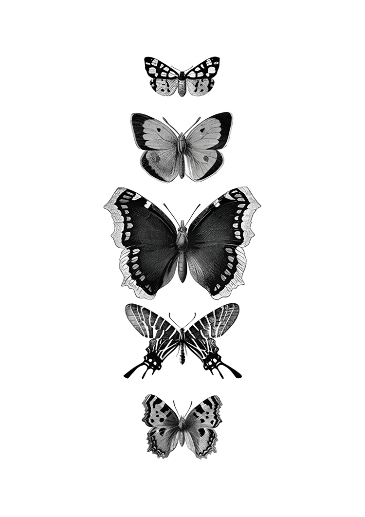 Fünf Verschiedene Schmetterlinge In Einer Reihe Gemälde