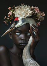 Dieses Gemälde zeigt eine junge Frau mit einem Kranich.