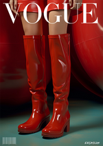 Glänzende Rote Stiefel Auf Einem Vogue-Cover-Gemälde