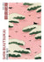 Dieses Gemälde zeigt einen rosa Hintergrund mit stilisierten grünen und weißen Wolken sowie schwarzen Vögeln im Flug.