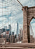 Dieses Gemälde zeigt einen Blick auf die Skyline von New York City durch die Kabel und den steinernen Bogen der Brooklyn Bridge, mit dem One World Trade Center im Hintergrund.