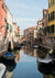 Dieses Gemälde zeigt einen ruhigen Kanal in Venedig, gesäumt von bunten Gebäuden und kleinen überbrückten Wegen.