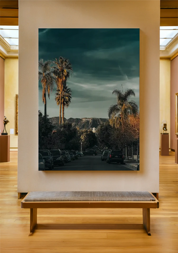 Stadtstraße mit hohen Palmen Gemälde