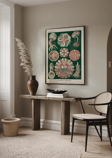 Unsere botanische Kunst unterstreicht die zarte Schönheit von Pflanzen und Blumen. Diese Drucke sind perfekt für alle, die den ruhigen und raffinierten Look botanischer Kunst schätzen. Von detaillierten Zeichnungen von Blättern und Blüten bis hin zu künstlerischen Interpretationen bietet unsere Kollektion vielfältige Möglichkeiten, Ihr Interieur zu verschönern.