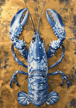 Delfter Blau Hummer mit goldenem Hintergrund Gemälde