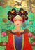 Eine detailreiche, farbenfrohe Darstellung einer orientalischen Königin, umgeben von Lotusblumen und Goldmustern.