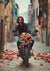 In diesem Gemälde siehst du John Wick auf seinem Motorrad, umgeben von bunten Blumen, ein kraftvolles und lebendiges Bild, das seinen robusten Charakter perfekt widerspiegelt.