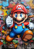 Auf diesem Gemälde ist ein lebendiges Graffiti-Kunstwerk mit einem großen, farbenfrohen Bild von Super Mario dargestellt.