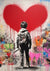 Dieses Gemälde zeigt ein Graffiti-Kunstwerk mit einem Jungen von hinten, der auf ein großes rotes Herz blickt.