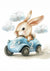 Kaninchen im blauen Rennwagen Gemälde