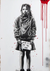 Dieses Gemälde zeigt schwarz-weiße Graffiti eines jungen Mädchens mit einem Schild mit dem Text.
