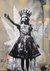 Dieses Gemälde zeigt Straßenkunst mit einem jungen Mädchen mit einer Krone und Flügeln,