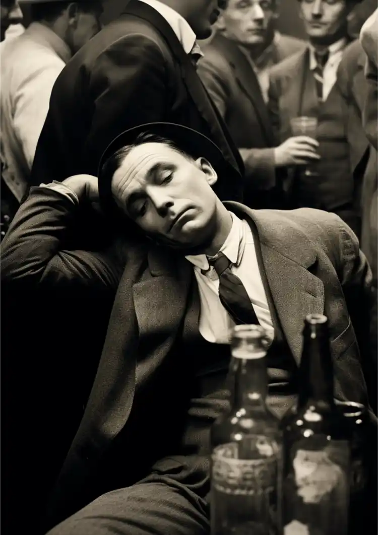 Een Gemälde von einem Mann, der ein paar Bierchen zu viel getrunken hat.