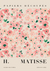 Ein Gemälde im Vintage-Stil mit dem Titel "Papiers Découpés" von H. Matiss, mit einem Blumenmuster in Rosa und Grün auf einem gebrochen weißen Hintergrund.
