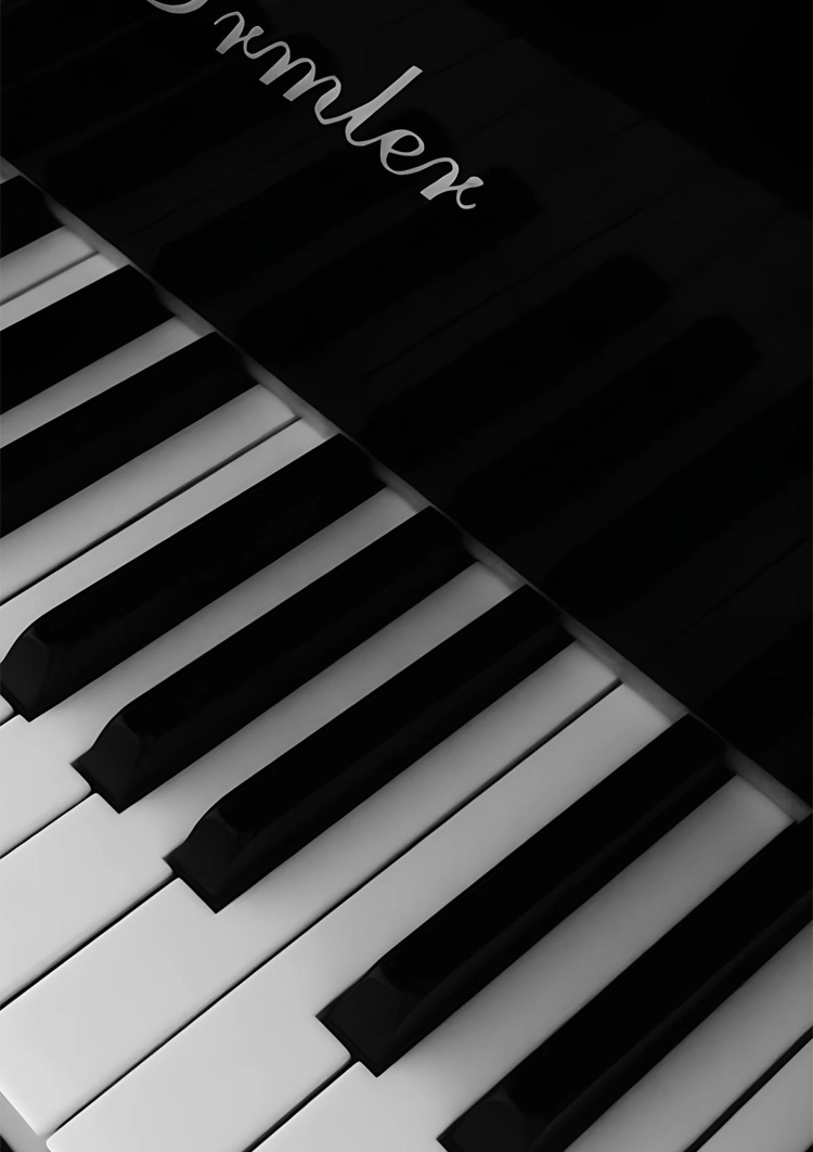 Nahaufnahme einer Klaviertastatur mit schwarzen und weißen Tasten. Der Fokus liegt auf dem Kontrast und den Details der Klaviertasten.