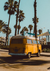 Ein Gemälde eines Vintage-Busses, umgeben von Palmen.