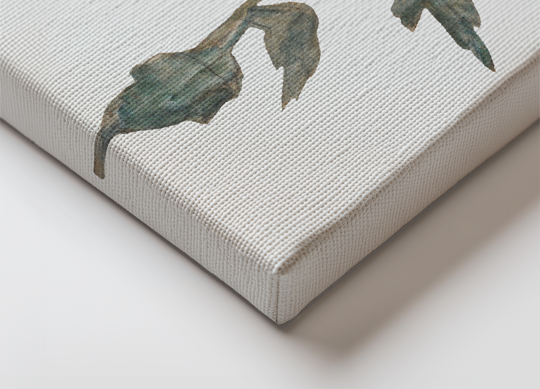 Met de omslag bedoelen we de zijkanten van het canvas. We zorgen ervoor dat het werk wordt uitgebreid, zodat het zichtbare gedeelte gelijk blijft en op de mooiste manier doorloopt in de zijkanten!