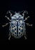 Dit schilderij toont een gedetailleerde kever met een exoskelet versierd met blauw-witte bloempatronen, geïnspireerd op porseleinkunst, compleet met verfijnde poten en antennes.