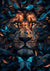 Dit schilderij toont een majestueuze leeuw, omgeven door levendige flora en fauna, waaronder blauwe vlinders, vogels en vissen. De intense blik van de leeuw wordt gecombineerd met rijke aardse en levendige blauwtinten.