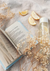 Een schilderij met de focus op een boek met de tekst American Voices en daaromheen ligt citroen en takjes.