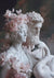 Dit schilderij toont een romantisch gedetailleerd en sereen stel, samen met een elegante zwaan, als gipsfiguren.