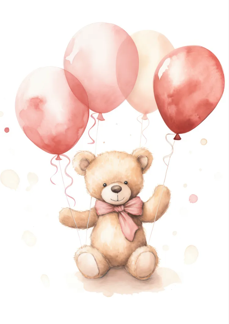 Teddybeer Met Roze Ballonnetjes Schilderij
